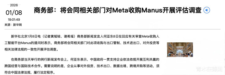 中国商务部新闻发言人何亚东8日在回应有关审查美国科技巨头Meta收购人工智能平台中国初创企业Manus的提问时表示,商务部将会同相关部门对此项收购与出口管制、技术进出口、对外投资等相关法律法规的一致性开展评估调查。